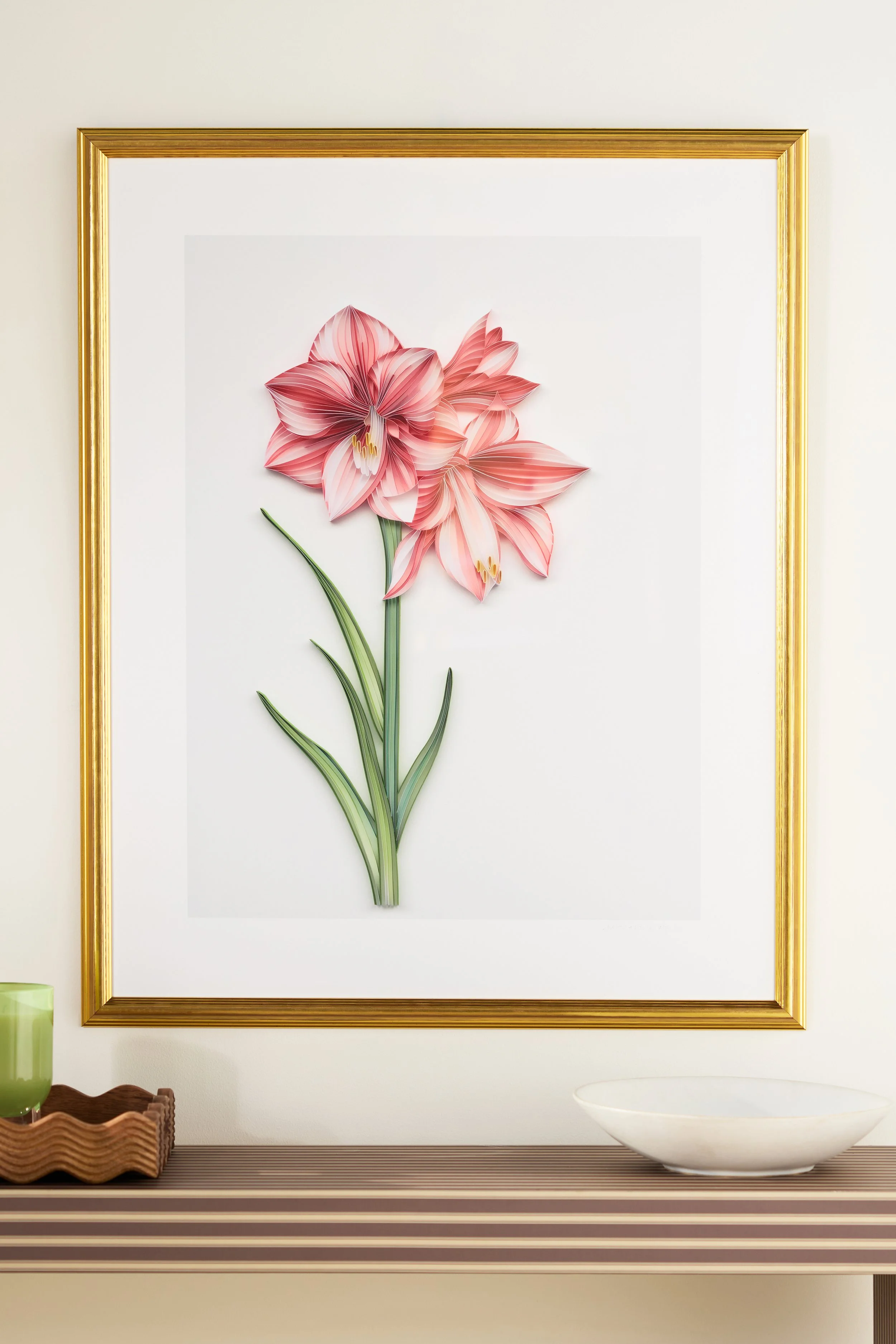 Bold, elegant, and impossible to ignore, the amaryllis is a bloom that commands attention. This limited edition fine art print showcases an original paper artwork that was crafted with meticulous care using edge-glued paper strips.