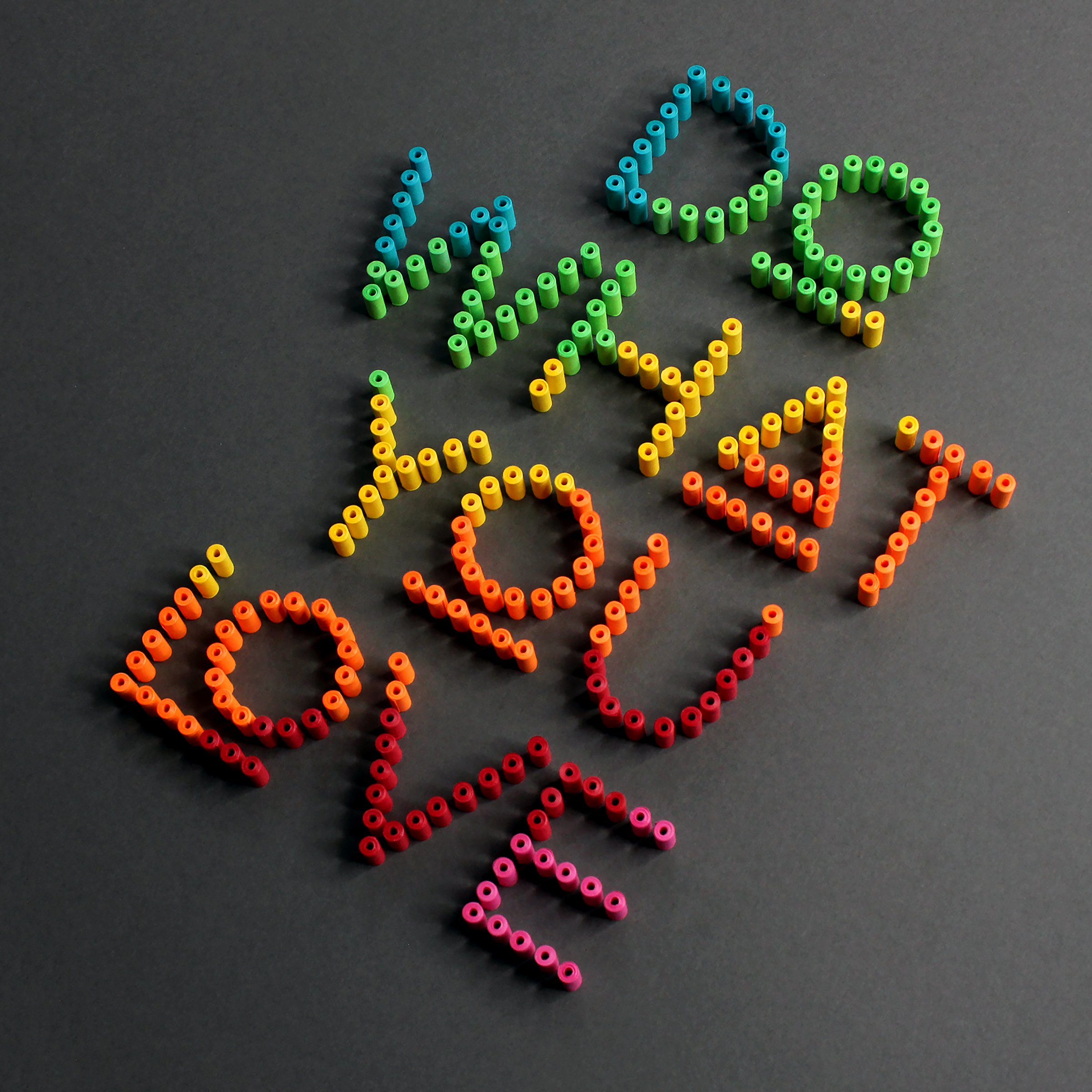 Typography composed of individual tightly rolled paper coils.